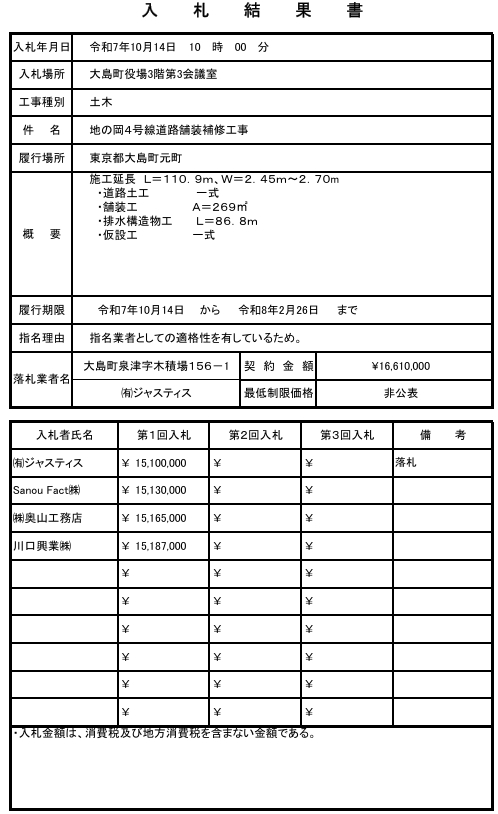 - 【2023年6月26日①】大金沢3号線道路改良舗装工事※10円差の激戦