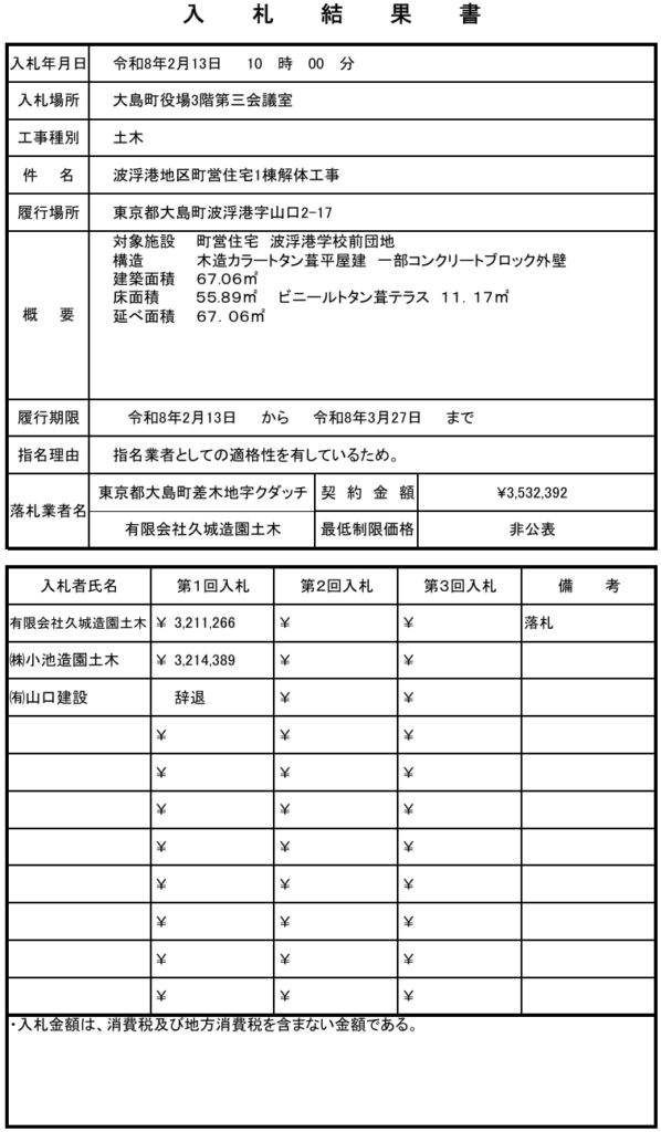 - 【2024年5月31日①】大島町移住体験住宅建設工事※抽選