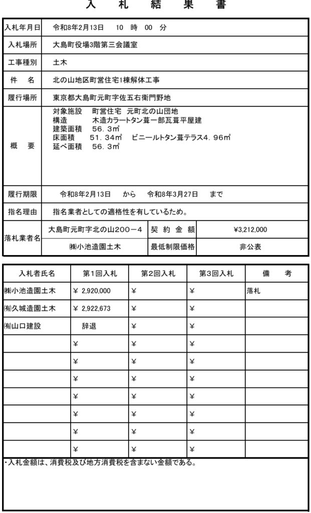 - 【2023年6月26日①】大金沢3号線道路改良舗装工事※10円差の激戦