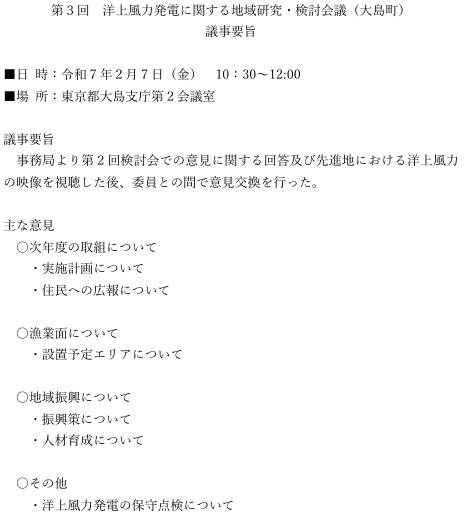 第3回洋上風力に関する地域研究・検討会議(大島町)