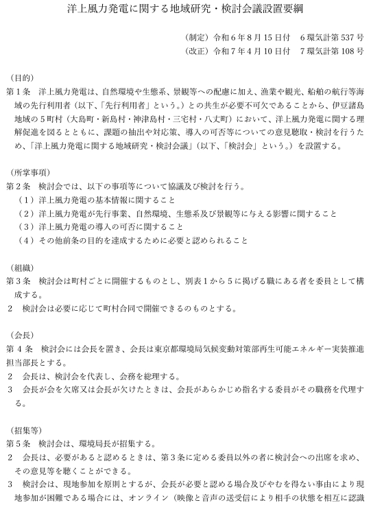 令和7年4月10日付けで、「洋上風力発電に関する地域研究・検討会議設置要綱」が改正されました。