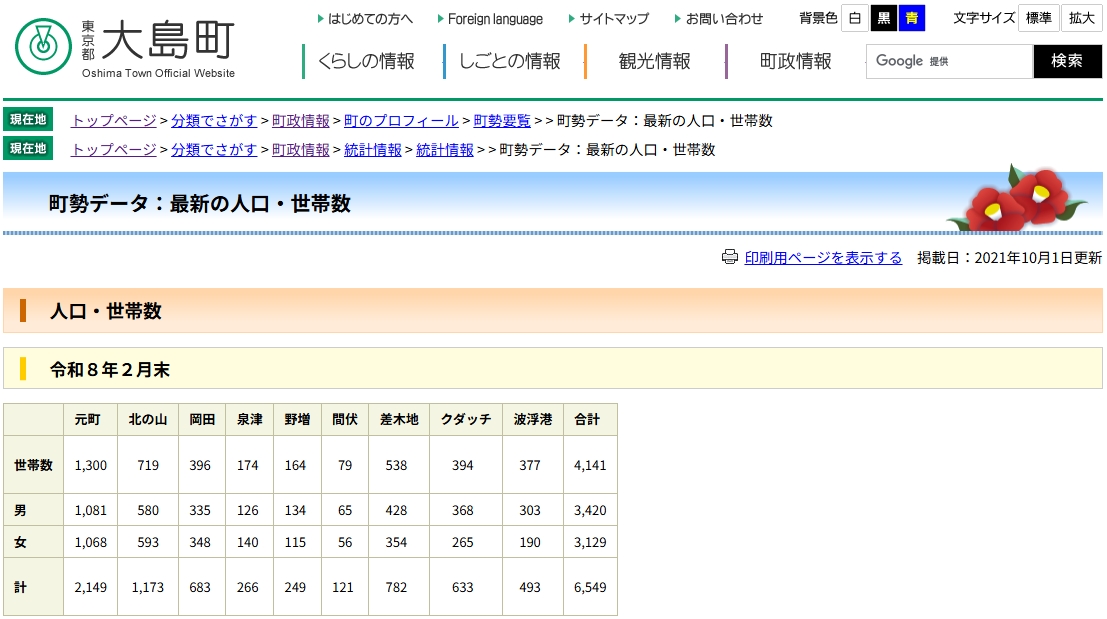 都心から最も近い「伊豆大島」(東京都大島町)も東京ではありますが、離島なのでどれくらいの人数が島で生活されているか気になりますよね。