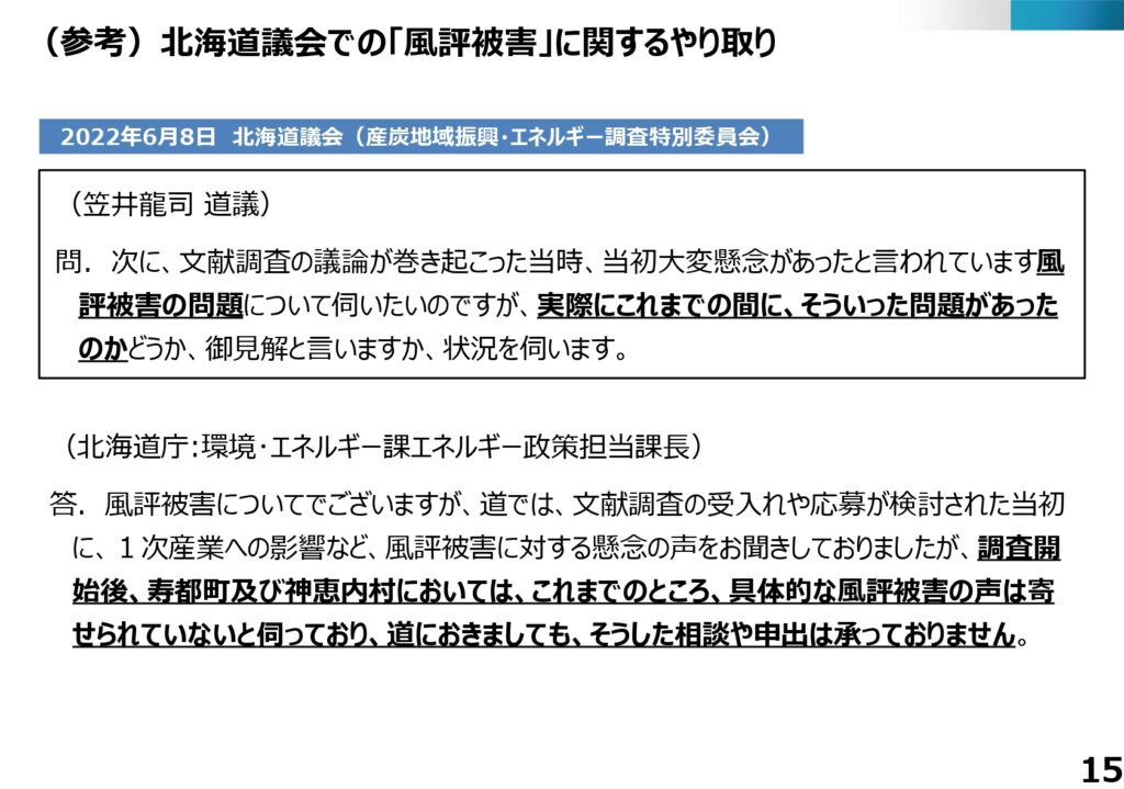 「本日、赤澤経済産業大臣からの文献調査の申し入れ文書を受け取りました。