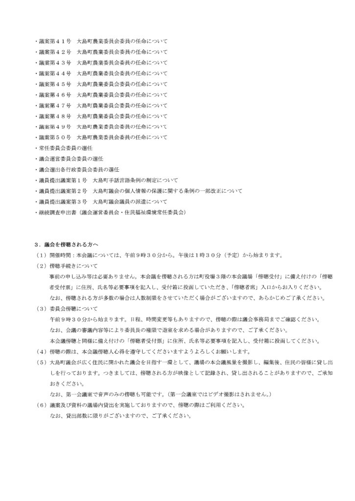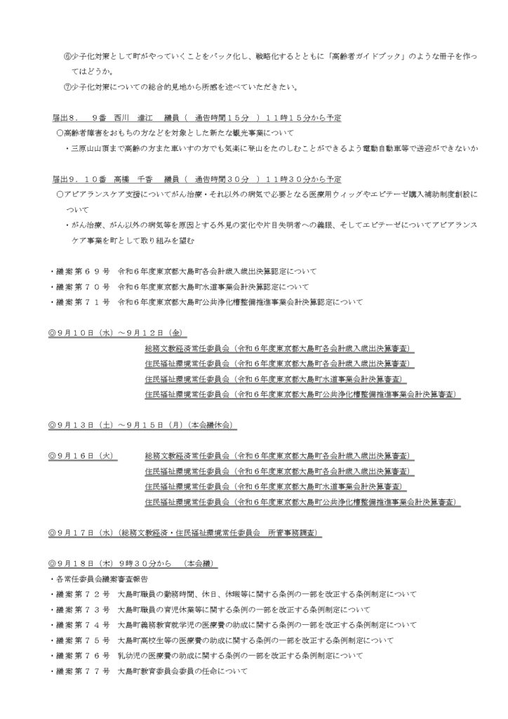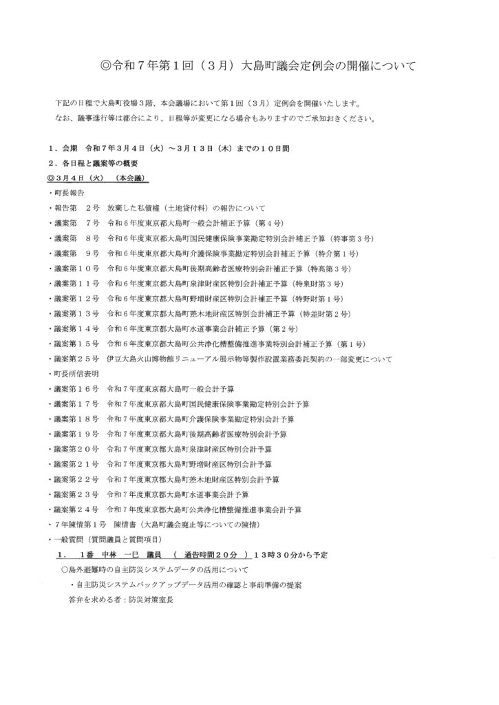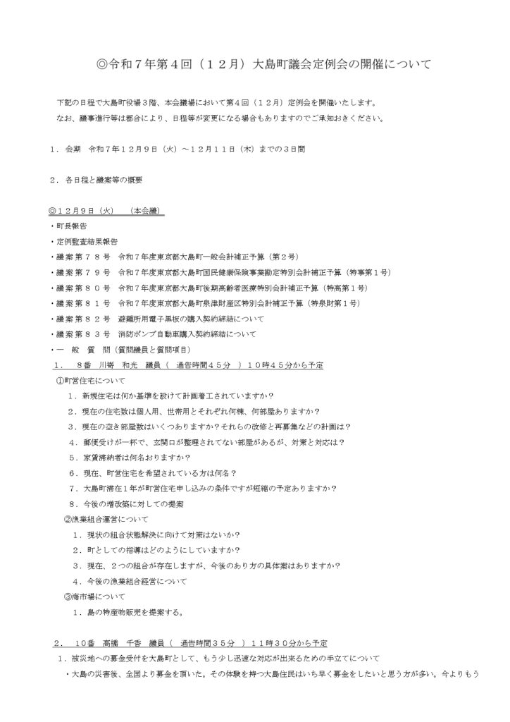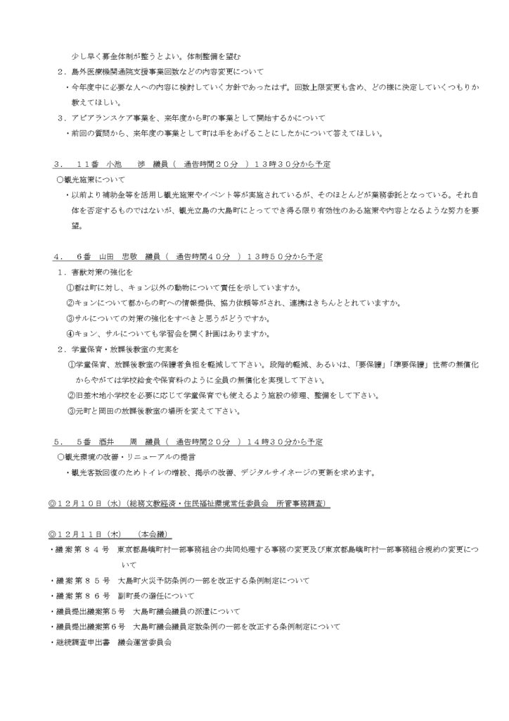 ・第3回定例会は9月頃開催(大島はまだ観光シーズン)のため、議員さんは本業を優先して、質問を作成しない可能性があります。